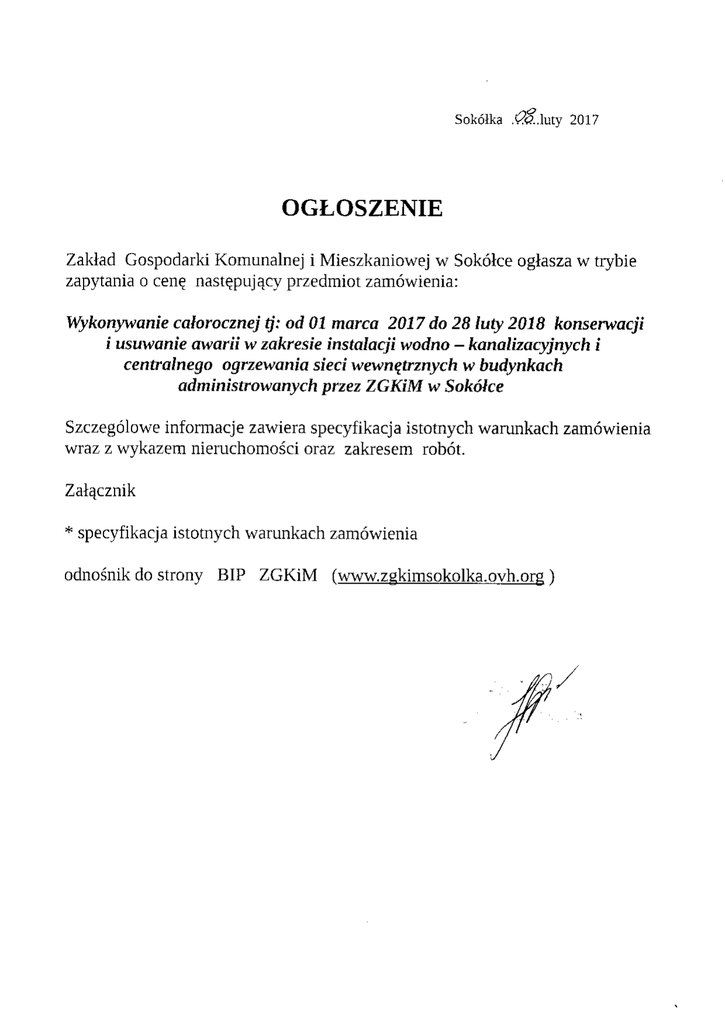 oGŁoSZENIE - Zakład Gospodarki Komunalnej i Mieszkaniowej w