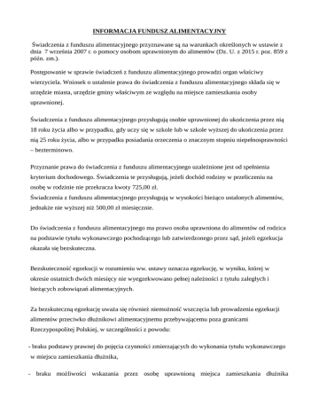 informacja fundusz alimenacyjny