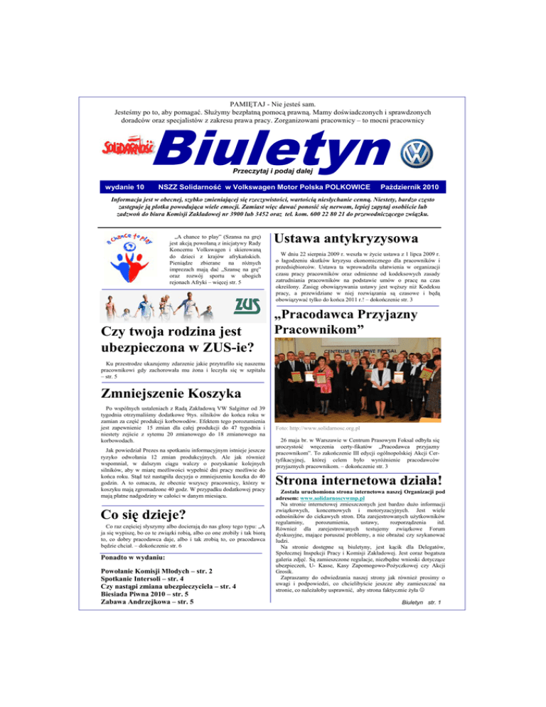 Biuletyn 10.2010 - "Solidarność" w Volkswagen Motor