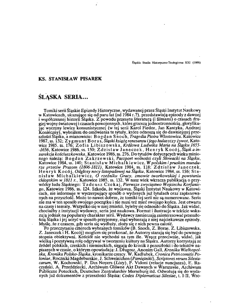Śląskie Studia Historyczno-Teologiczne XXI (1988)