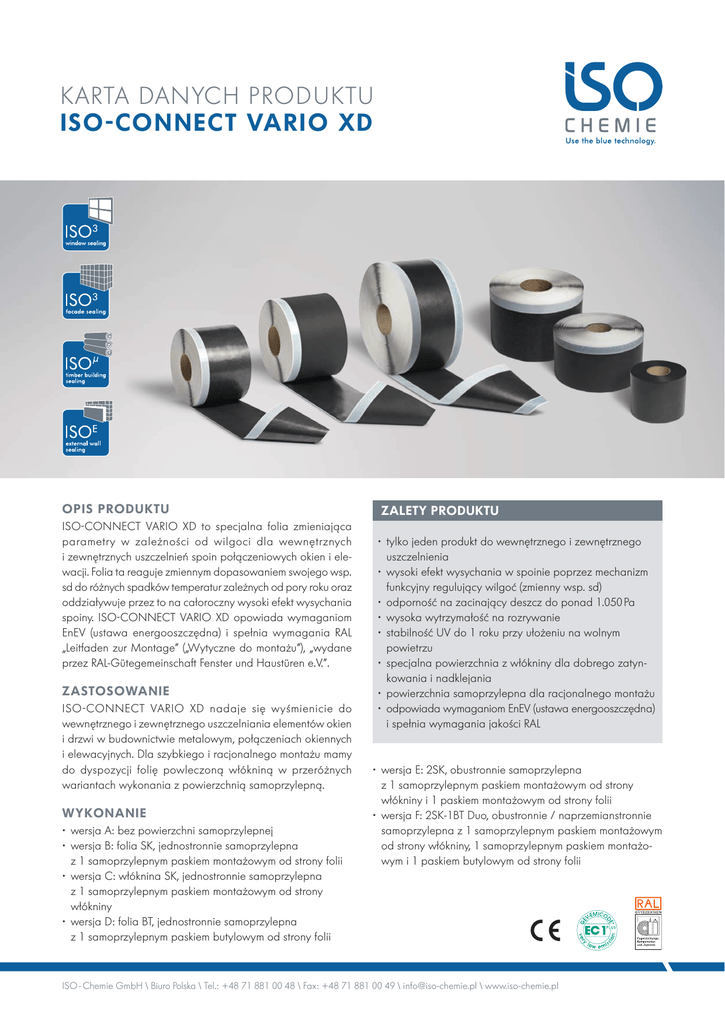 ISO-CONNECT VARIO XD KARTA DANYCH PRODUKTU