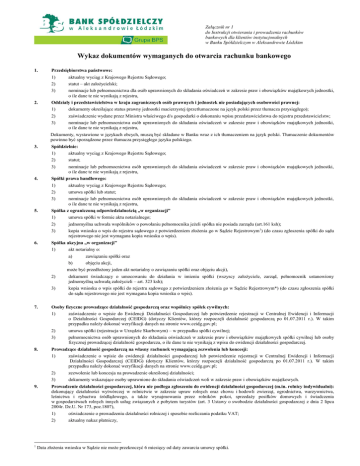 Wykaz dokumentów wymaganych do otwarcia rachunku bankowego