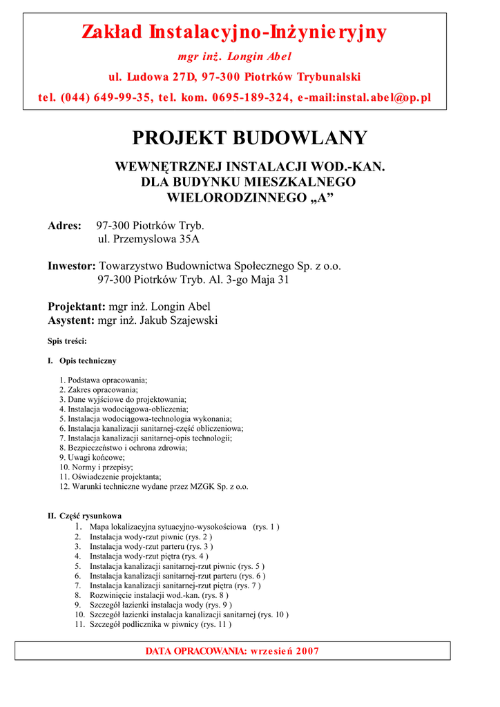 ul. Przemysłowa 35_opis techniczny_instalacje wewn