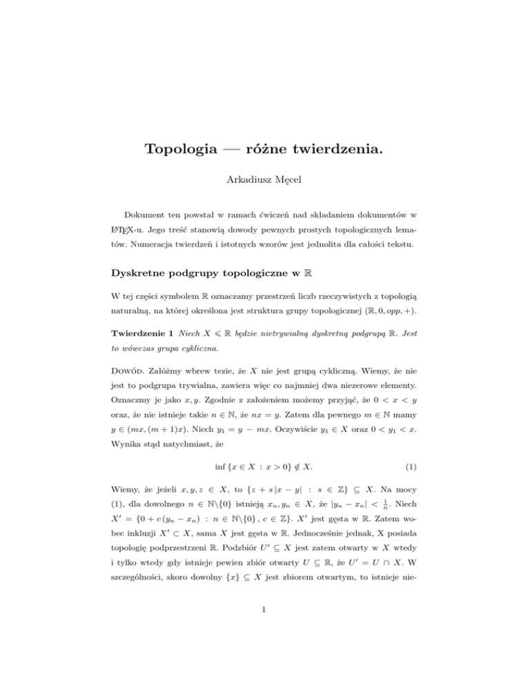 LATEX-u. Jego treść stanowią dowody pewnych prostych topologicznych lematów. Numeracja twierdzeń i istotnych wzorów jest jednolita dla całości tekstu.