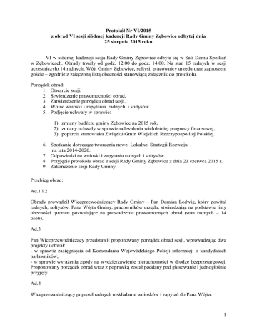 1 Protokół Nr VI/2015 z obrad VI sesji siódmej kadencji Rady Gminy