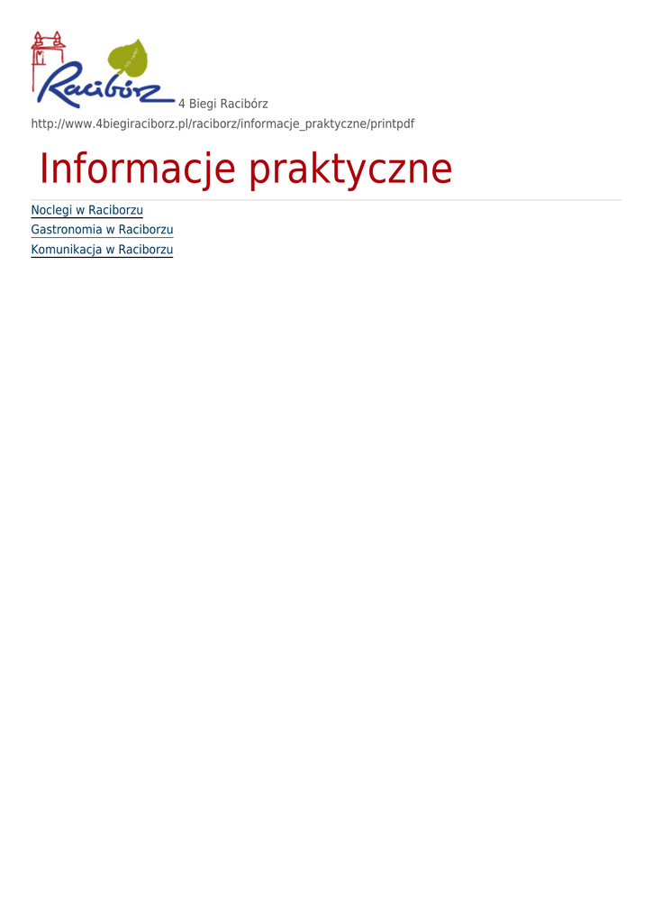 4 Biegi Racibórz http://www.4biegiraciborz.pl/raciborz/informacje_praktyczne/printpdf Informacje praktyczne Noclegi w Raciborzu Gastronomia w Raciborzu Komunikacja w Raciborzu