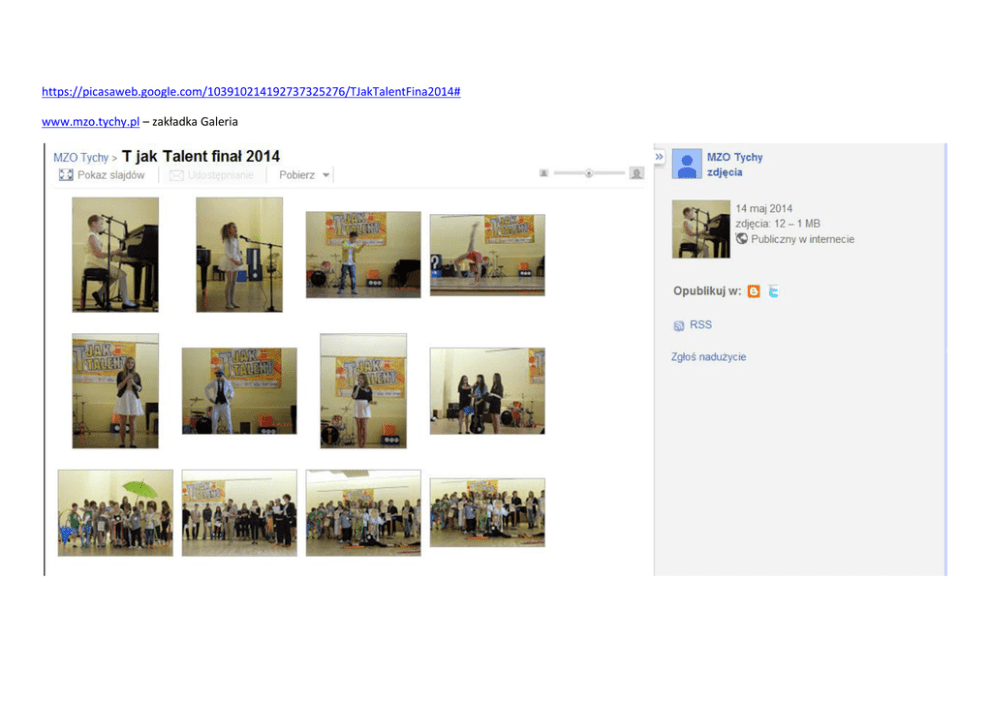 https://picasaweb.google.com/103910214192737325276/TJakTalentFina2014# www.mzo.tychy.pl – zakładka Galeria