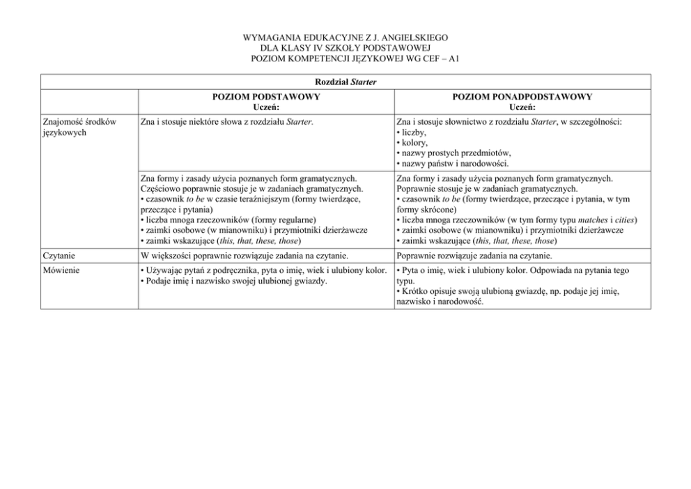 POZIOM KOMPETENCJI JĘZYKOWEJ WG CEF – A1