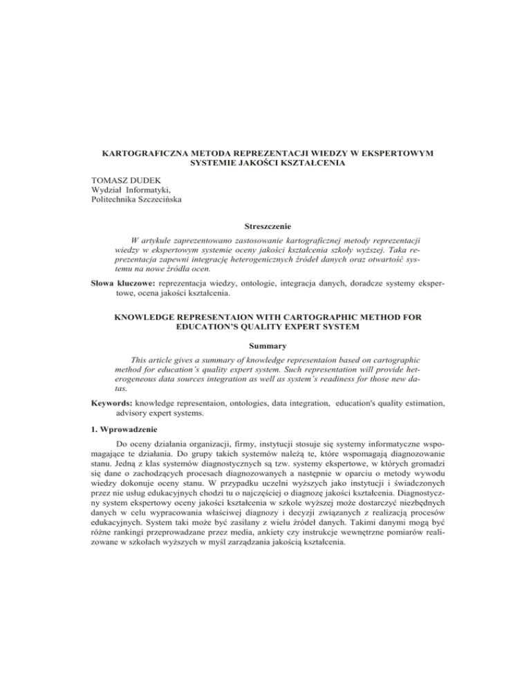 Kartograficzna metoda reprezentacji wiedzy w ekspertowym systemie jakoci kształcenia