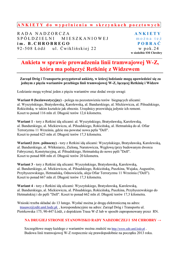 Ankieta w sprawie prowadzenia linii tramwajowej W-Z,