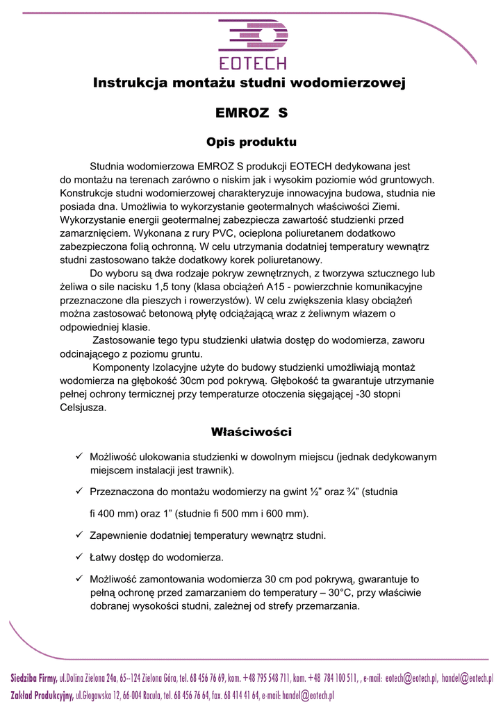 Instrukcja montażu studni wodomierzowej EMROZ S