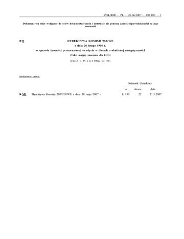 B DYREKTYWA KOMISJI 96/8/WE z dnia 26 lutego 1996 - EUR-Lex