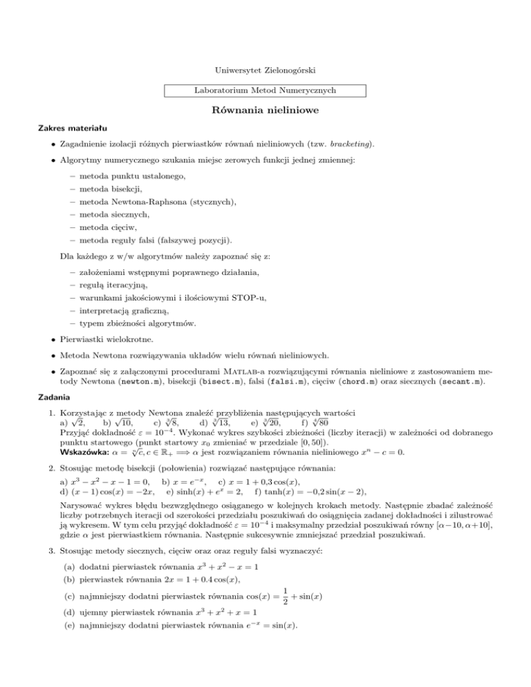 Równania nieliniowe - Uniwersytet Zielonogórski