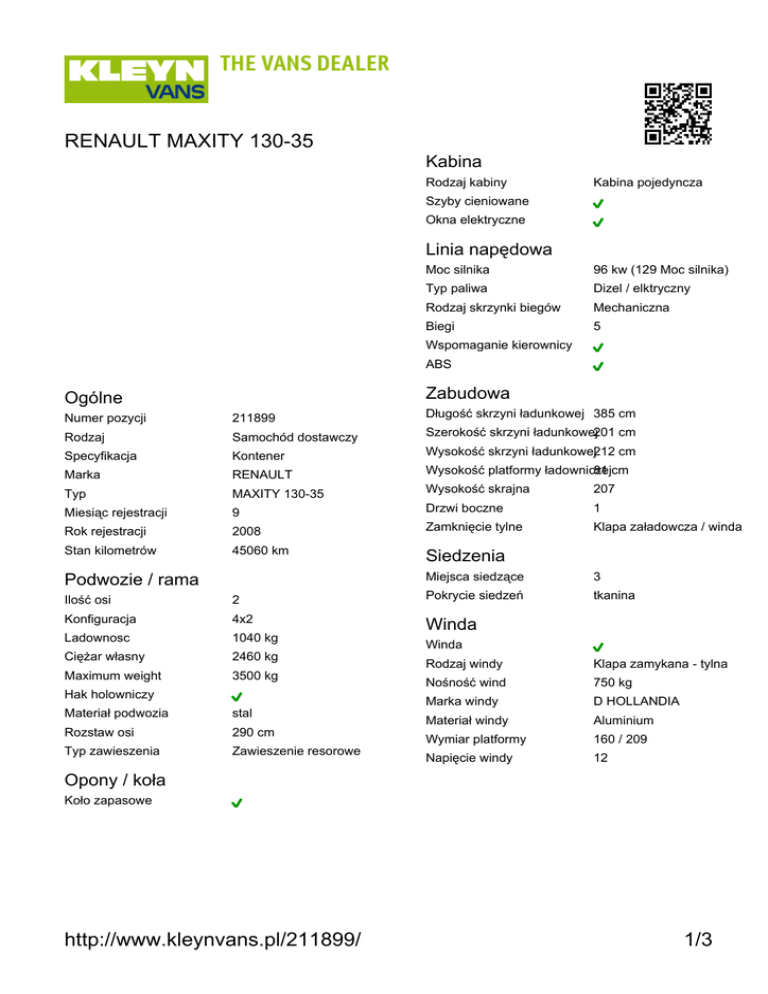 http://www.kleynvans.pl/211899/ 1/3 RENAULT MAXITY 130-35