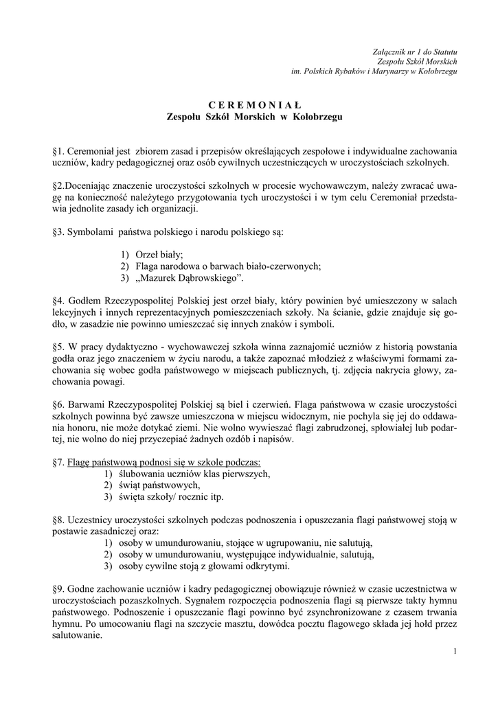 Statut ZSM, załącznik nr 1 - Zespół Szkół Morskich w Kołobrzegu