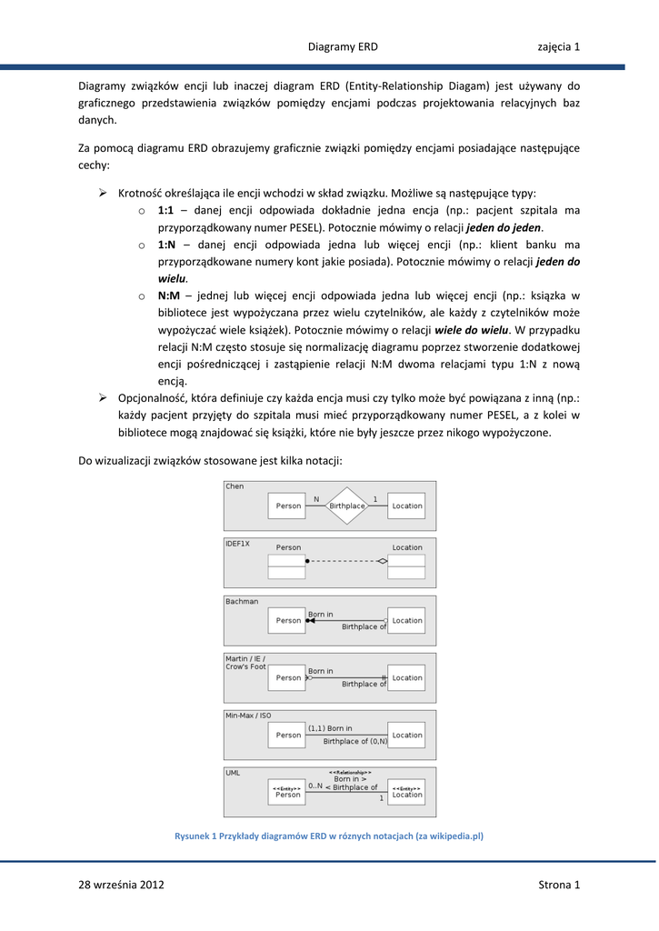 Diagramy ERD zajęcia 1 28 września 2012 Strona 1