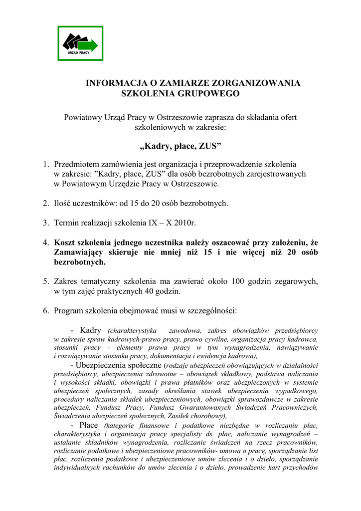Kadry, Płace, ZUS - Powiatowy Urząd Pracy w Ostrzeszowie