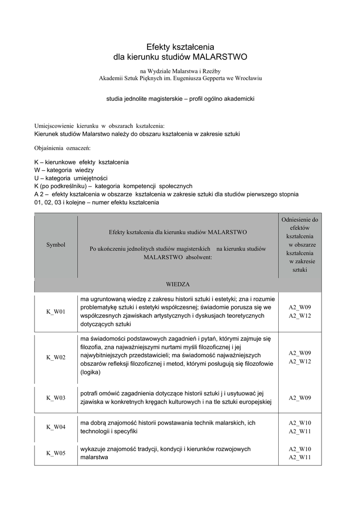Efekty kształcenia dla kierunku studiów MALARSTWO