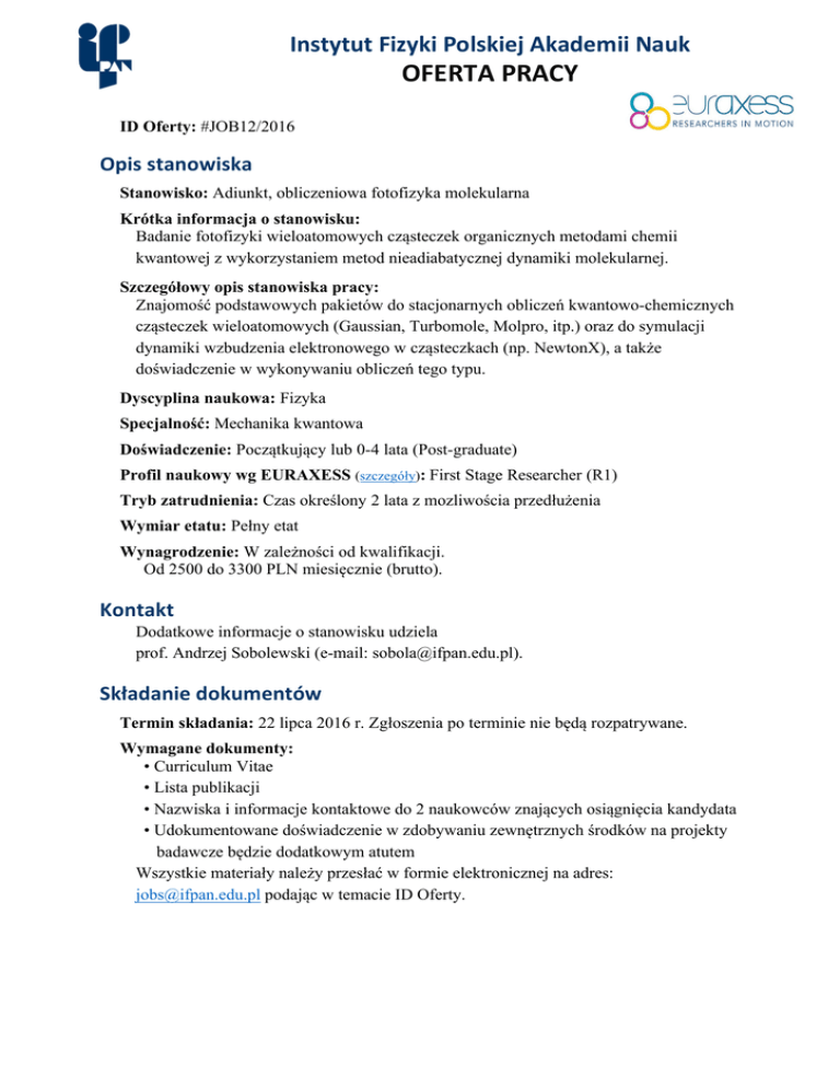 OFERTA PRACY - Instytut Fizyki PAN