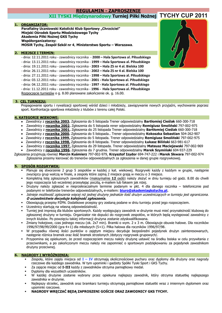 REGULAMIN - ZAPROSZENIE XII TYSKI Międzynarodowy Turniej