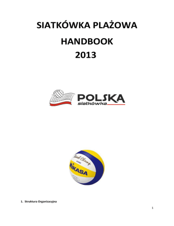 SIATKÓWKA PLAŻOWA HANDBOOK 2013 1. Struktura Organizacyjna 1 1.1 Polski Związek Piłki Siatkowej Polski Związek Piłki Siatkowej jest ogólnokrajowym związkiem sportowym działającym w dziedzinie piłki siatkowej, siatkówki plażowej oraz innych odmian piłki siatkowej aprobowanych przez FIVB (Fédération Internationale de Volleyball - Międzynarodowa Federacja Piłki Siatkowej) i CEV (Confédération Européenne de Volleyball - Europejska Konfederacja Piłki Siatkowej). Terenem działania Związku jest teren Rzeczypospolitej Polskiej Dla realizacji swoich celów Związek może działać poza granicami Rzeczypospolitej Polskiej. Siedzibą władz jest miasto stołeczne Warszawa. Celem Związku jest: organizacja współzawodnictwa sportowego, popularyzacja i rozwój piłki siatkowej w Polsce, przygotowywanie kadry narodowej do uczestnictwa w międzynarodowym współzawodnictwie sportowym, reprezentowanie interesów piłki siatkowej w organizacjach krajowych i międzynarodowych, podejmowanie działań na rzecz promocji i rozwoju piłki siatkowej w formie amatorskiej i profesjonalnej, prowadzenie działalności edukacyjnej i wychowawczej w zakresie sportu, zdrowia i ochrony środowiska, ochrona praw i interesów oraz koordynacja działań członków Związku, zawodników, trenerów, instruktorów, statystyków członków sztabów medycznych, menedżerów, sędziów i działaczy, 1.2 Wydział Siatkówki Plażowej Wydział Siatkówki Plażowej jest jednostką organizacyjną Polskiego Związku Piłki Siatkowej. Wydział odpowiada za wszystkie sprawy związane z siatkówką plażową. Wydział pełni również funkcję organu przygotowującego i opiniującego projekty tworzące warunki do funkcjonowania, rozwoju i promocji siatkówki plażowej na terenie całego kraju. Sprawy, o których mowa powyżej Wydział realizuje we współpracy z podmiotami zwanymi dalej „Promotorami” zajmującymi się organizacją turniejów Siatkówki Plażowej, z Wojewódzkimi Związkami Piłki Siatkowej oraz ze sponsorami. W sprawach międzynarodowych Wydział reprezentowany jest przez uprawnionych pracowników PZPS lub uprawnionych członków Wydziału współpracujących z FIVB i CEV. 2 1.3 Dział Siatkówki Plażowej Dział Siatkówki Plażowej jest jednostką organizacyjną biura PZPS. Stanowią ją pracownicy merytoryczni odpowiedzialni za organizację i koordynację wszelkich działań związanych z Siatkówką Plażową w Polsce i zagranicą. 2. Licencja zawodnika (zawodniczki) Siatkówki Plażowej. 2.1 Rodzaje licencji zawodnika (zawodniczki) Siatkówki Plażowej Warunkiem startu w rozgrywkach siatkówki plażowej PZPS lub WZPS jest posiadanie przez zawodnika (zawodniczkę) odpowiedniej licencji zawodnika (zawodniczki) siatkówki plażowej. Wyróżnia się następujące rodzaje licencji zawodnika (zawodniczki) siatkówki plażowej: Licencja PZPS Licencja WZPS 2.2 Zasady wydawania licencji PZPS zawodnika (zawodniczki) siatkówki plażowej i rejestracja zawodników (zawodniczek) w PZPS Licencja PZPS zawodnika (zawodniczki) siatkówki plażowej jest wydawana przez Polski Związek Piłki Siatkowej w biurze PZPS lub przez Delegata Technicznego PZPS na zawodach siatkówki plażowej po spełnieniu warunków zapisu w punkcie 2.2.1. Licencja PZPS zawodnika (zawodniczki) siatkówki plażowej może być wydana: Zawodnikowi (zawodniczce) posiadającemu (posiadającej) obywatelstwo polskie, Zawodnikowi (zawodniczce) nieposiadającemu (nieposiadającej) obywatelstwa polskiego, po przedstawieniu pisemnej zgody macierzystej federacji oraz zgody odpowiedniej międzynarodowej federacji (CEV lub FIVB). 2.2.1 Aby otrzymać licencję PZPS zawodnika (zawodniczki) siatkówki plażowej, zawodnik (zawodniczka) musi spełnić następujące warunki: a) Zarejestrować się na stronie internetowej http://beach.pzps.pl zwanej dalej programem i postępować zgodnie z zawartymi w nim procedurami. 3 b) Przedstawić, na odprawie technicznej, ważne badania lekarskie, wydane zgodnie z ustawą z dnia 25 czerwca 2010 roku o sporcie na odprawie technicznej (zawodnicy zagraniczni ważny certyfikat medyczny CEV lub FIVB) c) Dokonać opłaty za licencję PZPS zawodnika (zawodniczki) siatkówki plażowej. Wysokość opłaty w danym sezonie za licencję PZPS jest określona w komunikacie Wydziału Siatkówki Plażowej PZPS, Punkt d) dotyczy tylko zawodników (zawodniczek), którzy (które) w dniu złożenia „Wniosku o wydanie licencji PZPS zawodnika (zawodniczki) siatkówki plażowej” nie ukończyli (ukończyły) 18 roku życia. d) Dołączyć do „Wniosku o wydanie licencji PZPS zawodnika (zawodniczki) siatkówki plażowej” pisemną zgodę rodziców lub opiekunów prawnych na wydanie licencji. e) Wszystkie pozostałe dokumenty niezbędne do wydania licencji zgodnie z ustawą z dnia 2 5 czerwca 2010 roku o sporcie. f) Uiścić zaległości finansowe z poprzednich sezonów. 2.2.2 Zawodnicy (zawodniczki) posiadający licencję PZPS zawodnika (zawodniczki) siatkówki plażowej są rejestrowani w PZPS, a następnie uwzględnieni w rankingu PZPS i FIVB (dotyczy turniejów trzygwiazdkowych). 2.2.3 Ważność licencji: Sezonowa - do końca ważności badań lekarskich, ale nie dłużej niż do końca sezonu. W przypadku upłynięcia terminu ważności licencji, licencja będzie bezpłatnie przedłużona po przedstawieniu nowych badań lekarskich zgodnie z przepisem. Jednorazowa - na jeden turniej. 2.2.4 Licencja zawodnika siatkówki plażowej PZPS uprawnia do: a) Startu w rozgrywkach PZPS w siatkówce plażowej w kategoriach wiekowych powyżej 19 lat, 4 b) Zdobywania punktów rankingowych zgodnie z miejscem w Klasyfikacji Końcowej Turnieju, c) Otrzymania na wniosek PZPS licencji (certyfikatu) Europejskiej Konfederacji Piłki Siatkowej (CEV) lub Międzynarodowej Federacji Piłki Siatkowej (FIVB), uprawniającej (uprawniającego) do udziału w zawodach międzynarodowych - Mistrzostwach Europy, Mistrzostwach Świata, Igrzyskach Olimpijskich 
