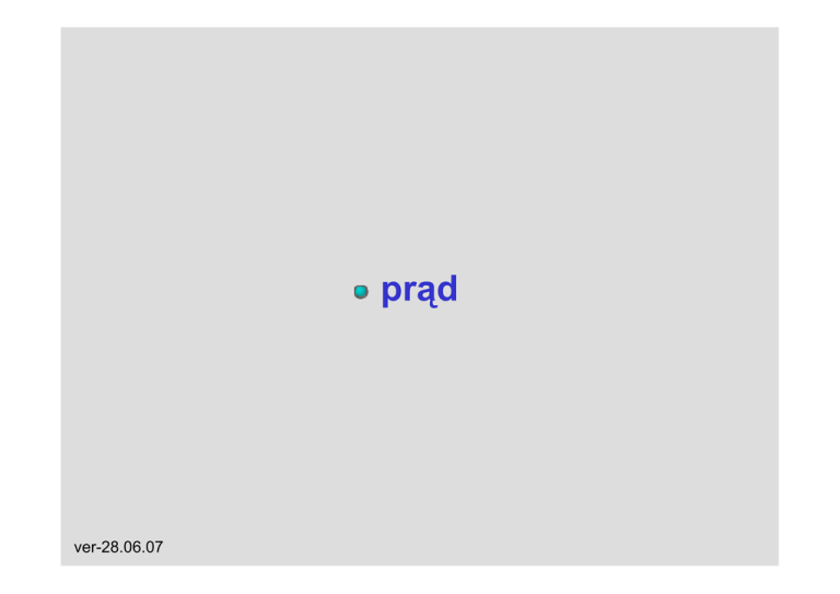 prąd ver-28.06.07 prąd elektryczny stacjonarny prąd d elektryczny l kt - przepływ ł niezwiązanych i i h łładunków d kó • metale nośniki prądu: • półprzewodniki • elektrony • elektrolity • jony • gazy • naładowane cząstki makro prąd jest wywoływany przez pole elektryczne r r r r r v +u = v + u = u ruch uporządkowany ruch termiczny (chaotyczny) wektor gęstości prądu − Δq Δq + Δ q natężenie prądu: Ι = = + Δt Δt Δt r def d Ι r j = eu + dSt wektor gęstości prądu r r jest to pole wektorowe – j (r ) natężenie prądu przepływającego przez r r powierzchnię S: Ι = j ⋅ dS ∫ S (strumień wektora gęstości prądu) cd. cd u+, u− - prędkości nośników prądu n+ , n− - koncentracje nośników prądu r r r j = e + n +u + + e − n −u − r r = ρ + u + + ρ −u − prąd stacjonarny (stały): Ι = jednostka natężenia prądu: [Ι ] = C = A s q = const t amper SI (André Ampère) równanie ciągłości ∫ S ∫ S r r dq j ⋅ dS = − dt zasada zachowania ładunku r r d ∂ρ j ⋅ dS = − ∫ ρ dV = − ∫ dV dt V ∂ t V r r = ∫ ∇ ⋅ j dV V ρ - gęstość objętościowa ładunku r r ∂ρ ∇ j dV ⋅ = ∫ ∫ ∂t dV V V czyli: r r ∂ρ ∇⋅ j = − ∂t cd. cd r r ∂ρ ∇ j dV ⋅ = ∫ ∫ ∂t dV V V − ∂ρ <0 ∂t r r prąd stały: ∇ ⋅ j = 0 − ∂ρ =0 ∂t r r ∂ρ ∇⋅ j = − ∂t − ∂ρ >0 ∂t linie prądu są zamknięte i: ∫ S pole bezźródłowe r r j ⋅ dS = 0 siła elektromotoryczna ϕ1 ϕ2 siły elektromotoryczne (SEM): chemiczne dyfuzja na granicy ośrodków zmienne p pole magnetyczne g y ε def = W q jednostka: [ε ] = V wolt (Alessandro Volta) SI 2 r r r r ∗ = q ∫ E ⋅ dl + q ∫ E ⋅ dl 2 W1,2 1 ε = q (ϕ 1 − ϕ 2 ) + q natężenie pola sił zewnętrznych 1 U= W1,2 = ϕ1 − ϕ2 + q ε http://pl.wikipedia.org/wiki/Ogniwo_Volty prawo Ohma I ~ U doświadczenie (przewód jednorodny) def R= U opór elektryczny Ι [R ] = V =Ω A om (Georg Ohm) SI R=ρ l S ρ – opór ó właściwy ś ( (stała materiałowa)) różniczkowe prawo Ohma dl E dS j t ż i prądu d natężenie d Ι = jdS napięcie dU = Edl opór różniczkowe prawo Ohma: R=ρ dl dS jdS = dS Edl ρ dl r r E j = ρ cd. cd r j = r E lub ρ r r j =σ E def σ = a gdy jeszcze SEM: r j 1 – przewodniość ρ r 1 r r* j = E+E ( ρ 2 ) dl Ι ∫ρ = dS 1 r r* r E + E ⋅ dl ∫( 2 1 ΙR = ϕ 1 − ϕ 2 + ) ε 1,2 w przypadku obwodu zamkniętego: w przypadku obwodu otwartego: ε Ι= 1,2 ε R = ϕ2 − ϕ1 przykład ϕ ϕ ϕ a ϕδ ϕα β R1 I R2 ε ϕb ϕγ I ϕ a − ϕ α = Ι R1 ϕ β − ϕ γ = Ι R2 R3 ε* x ϕ δ − ϕ b = Ι R3 I (ϕ a − ϕ b ) + (ϕ β − ϕ α ) + (ϕ δ − ϕ γ ) = = Ι (R1 + R2 + R3 ) ϕa − ϕb + ∑ ε = Ι ∑R prawa Kirchhoffa ∑ Ιk I3 I4 =0 k I2 N - liczba węzłów I1 N-1 niezależnych równań ∑ Ι k Rk k = ∑ε k k P - liczba gałęzi P-N+1 niezależnych równań np: znając Rk i ε k można znaleźć Ik moc prądu P= W = U Ι = (ϕ 1 − ϕ 2 ) Ι + t J =W s – wat (James Watt) def W = Uq = U Ι t [P ] = ε 1,2 Ι SI prawo Joule’a - Lenza prąd stały przewodnik nieruchomy praca na ogrzanie i Q = U Ι t = R 2Ι t ciepło doświadczenie Joule’a = ∫ R Ι 2 (t ) dt bocznikowanie 1 1 1 = + R R A Rb RA A U = Ι b Rb = Ι ′R A (Ι − Ι ′ ) Rb = Ι ′R A Rb Ι =x Ι′ Rb = 1 RA x −1 Ι′ + Ι b = Ι Ι′ Rb = RA ′ Ι−Ι mały! bocznikowanie (cd.) (cd ) RV R = RV + Rb V U ′ = Ι RV Rb U =x ′ U R b = RV ( x − 1) U = Ι (RV + Rb ) U RV + Rb = U′ RV d ż ! duży! mostek Wheatstone’a ε* Rx I ε R3 R2 R4 cztery węzły, sześć gałęzi → sześć niezależnych równań, pięć znanych wielkości: R2 , R3 , R4 , G ε , ε* I=0 − Ι 1R x + Ι 3 R3 = Ι 2 R2 − Ι 4 R 4 = 0 Ι 3 R3 + Ι 4 R 4 = ε ε ∗ Ι2 = Ι1 Ι4 = Ι3 R4 Ι1 = Ι 4 R2 Ι3 = ε R3 + R 4 Ι = Ι1 + Ι3 R3 R2 R2 (R3 + R 4 ) Rx = = R4 R4 ε ε ∗ dokładność! Ω=V/A André Marie Ampère (1775 - 1836) Georg Simon Ohm (1787 – 1854) hr. Alessandro Giuseppe Antonio hr Anastasio Volta (1745 - 1827) koniec