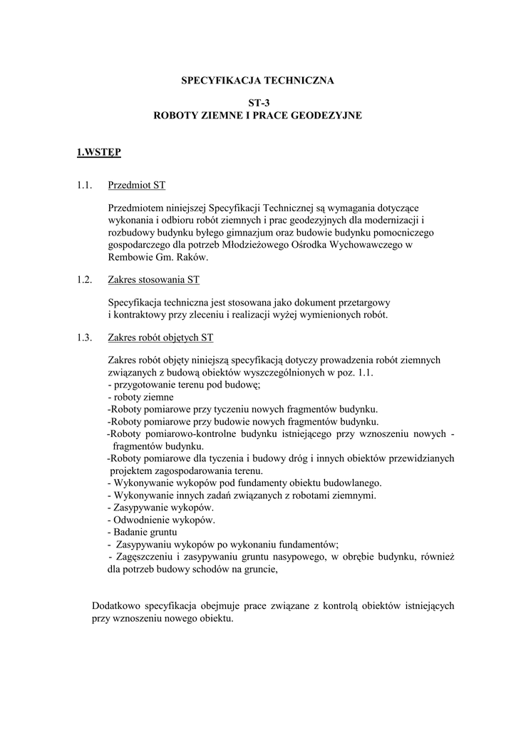 wykonania i odbioru robót ziemnych i prac geodezyjnych dla modernizacji i