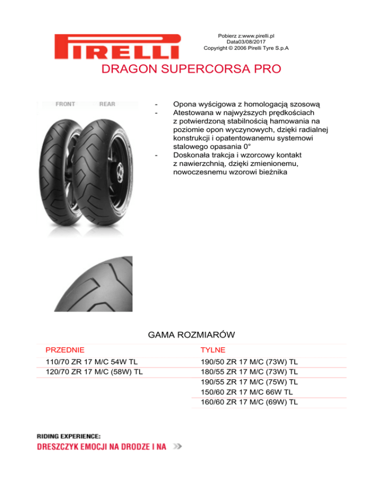 dragon supercorsa pro - Pirelli [www.pirelli.pl]