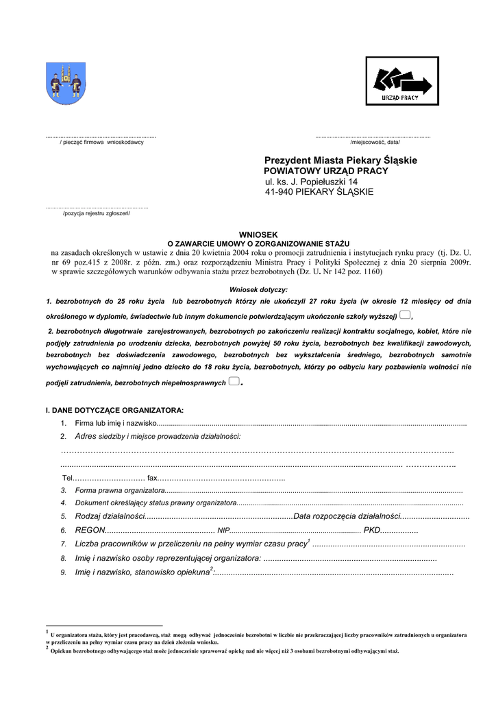 NOWY wniosek STAŻ - Powiatowy Urząd Pracy w Piekarach Śląskich
