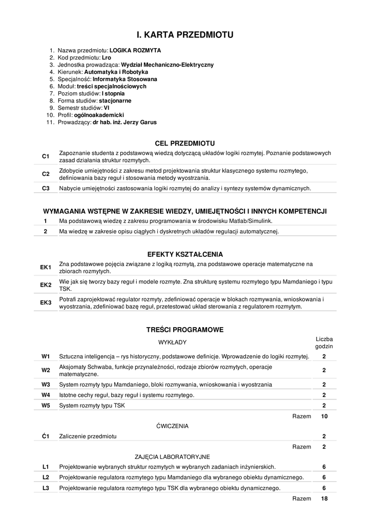 I. KARTA PRZEDMIOTU