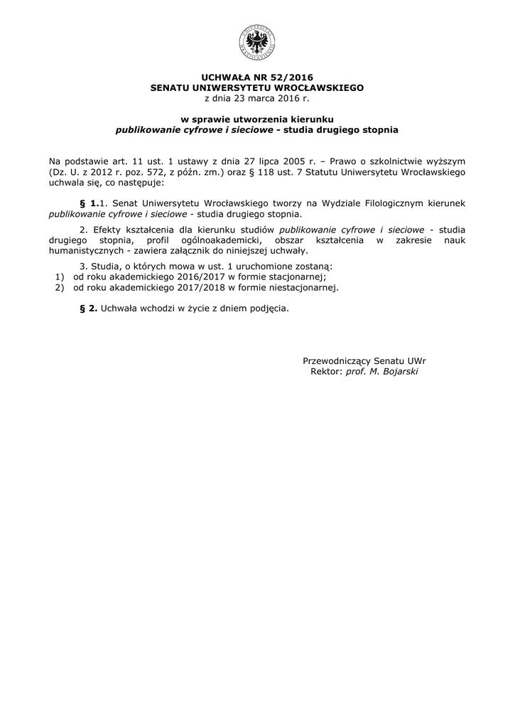 Uchwała Nr 52_2016 Senatu UWr z dnia 2016-03