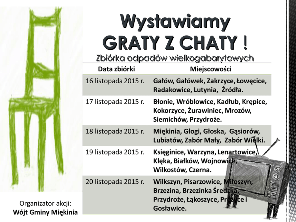 Wystawiamy GRATY Z CHATY ! Zbiórka odpadów wielkogabarytowych Organizator akcji: Wójt Gminy Miękinia