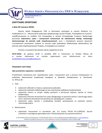 zapytanie ofertowe - Przedsiębiorcza Uczelnia