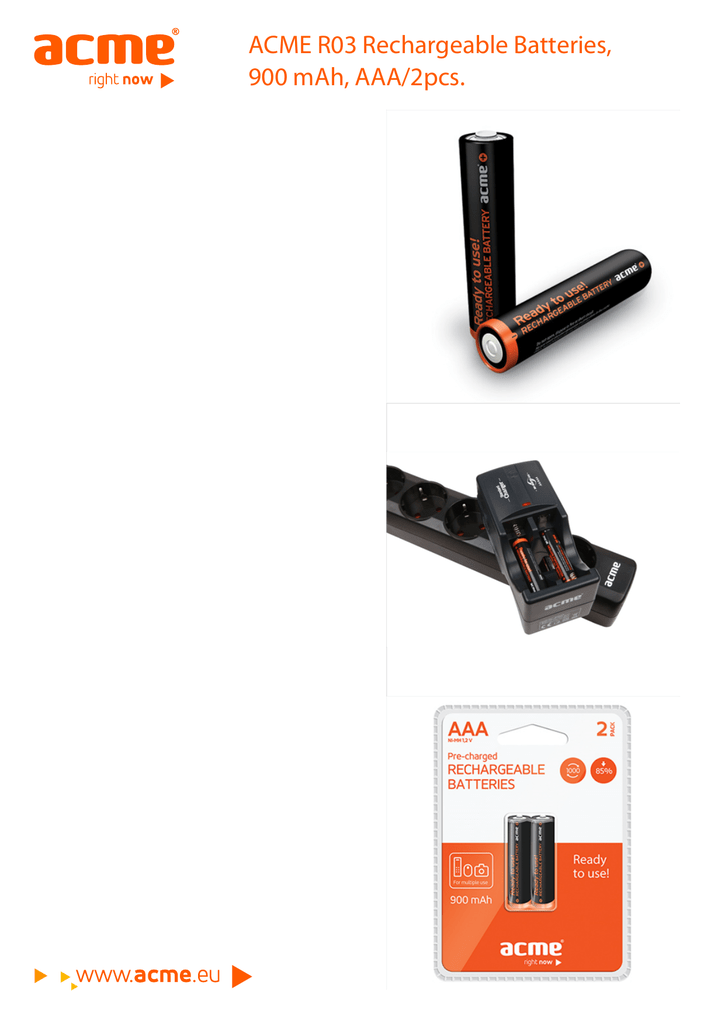 ACME R03 Rechargeable Batteries, 900 mAh, AAA/2pcs.