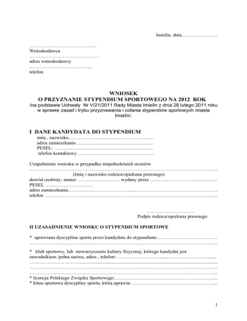 wniosek o przyznanie stypendium sportowego na 2012 rok