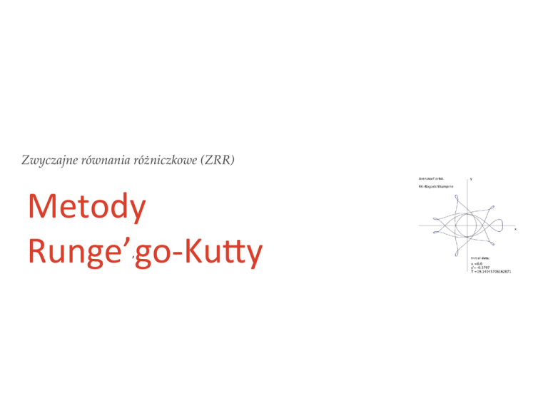 Zwyczajne równania różniczkowe (ZRR) Metody Runge’ go-Ku/y ’ MetodaRunge’go-Ku/y(4) Embedded Runge-Kutta methods. Są to jawne metody z dwoma zbiorami współczynników, pozwalające oszacować błąd obliczeń. Tablica Butchera współczynników metody rzędu s: 0 c2 c3 a21 a3 1 a32 … … cs as1 as2 … ass-1 —————————————————————————————— b1 b2 … bs-1 bs b’1 b’2 … b’s-1 b’s Dla metody stopnia s przybliżona wartość ys = y(x+h) jest: ys = y + h Σi=1..s bi ki , gdzie ki = f( x+ci h, y + Σj=1..s-1 aij kj ) , a szacunkowy błąd wynosi er = Σi=1..s (b’i - bi) ki . Przykładmetody Bogacki-Shampine 2(3) 0 1/2 1/2 3/4 0 3/4 1 2/9 1/3 4/9 —————————————————————————————— 2/9 1/3 4/9 0 7/24 1/4 1/3 1/8 Metody w pliku Butcher.java ———————————————————Nazwa Rząd ———————————————————————————————— RKF12a 1(2) RKF12b 1(2) RKF23a 2(3) RKF23b 2(3) BogackiShampine 2(3) Ceschino 2(4) Merson 4(5) Fehlberg 4(5) Zonneveld 4(3) DormandPrince 4(5) CashKarp 5(4) Verner 6(5) DormandPrince8 8(7) ———————————————————————————————— Problem3ciał-Arenstorf y1’’ = y1 + 2*y2' – m' (y1+m)/d1 - m (y1-m')/d2 y2’’ = y2 - 2*y1' – m' y2/d1 -m y2/d2 d1 = ((y1+m )2+y22)3/2, d2 = ((y1-m')2+y22)3/2, m = 0.012277471; m'=1-m; warunki początkowe: 1) Hairer, VOL. I: y1(0) = 0.994, y1'(0) = 0, y2(0) = 0, y2'(0) = -2.00158510637908252240537862224; tend = 17.0652165601579625588917206249; 2) Butcher: y[0] = 0.87978d; y[1] = 0d; y[2] = 0d; y[3] = -0.3797d; tend = 19.14045706162071d; 3) Hairer, vol I, Ex II, 6/4 y[0] = 0.994; y[1] = 0d; y[2] = 0d; y[3] = -2.03173262955733683573022057924d; tend = 11.124340337266085134999734047d; 4) Shampine... y[0]=1.2; y[1]=0d; y[2]=0d; y[3]=-1.04935750983031990726; tend=6.19216933131963970674; 6 7 OscylatorVanderPola (h"p://www.scholarpedia.org/ar2cle/Van_der_Pol_oscillator) ThevanderPoloscillatorisanoscillatorwithnonlineardamping governedbythesecond-orderdifferenJalequaJon x¨ − ε(1−x2)x˙ + x = 0(1) wherexisthedynamicalvariableandε > 0 aparameter.This modelwasproposedbyBalthasarvanderPol(1889-1959)in1920 whenhewasanengineerworkingforPhilipsCompany(inthe Netherlands). 8 TomakeelectricalcircuitsdescribedbyequaJon(1),acJvecircuit elementswiththecubicnonlinearproperty, i = ϕ(v) = γv3 − αv(2) arerequired,whereiandvarecurrentandvoltage,respecJvely.In the1920s,vanderPolbuilttheoscillatorusingthetriodeortetrode. AYerReonaEsaki(1925-)inventedthetunneldiodein1957,making thevanderPoloscillatorwithelectricalcircuitsbecamemuchsimpler. 9 Usingthetunneldiodewithinput-outputrelaJon i = ϕt(v) = ϕ(v−E0) + I0 (3) theequaJonforthecircuitshowninFigure1iswri/enasfollows. V˙ = 1/C (−ϕ(V) − W) (4) W˙ = V/L (5) Thiscanberewri/enas V¨−1/C (α−3γV^2)V˙+ V/LC = 0 (6) 10 i + - ir v R iL r iL L C Figure 2. Equivalent electrical circuit. i + ir + iL + iC = 0 ir = v/r, L diL/dt = v, (7) iC = Cv˙ Inserting these into (7) leads to equation of type (1). 11 Figure 1. An electrical circuit with a tunnel diode for the van der Pol oscillator. 12 Introducingnewvariables x=√(3γ/α) V, t′=t/√(LC),and ε = √(L/C)α,equaJon(6)canbetransformedintoequaJon(1). AsshownintheprevioussecJon,whenεislarge,theperiodof oscillaJonisproporJonaltoϵ.Thus,theoriginalsystemhasaperiod T ∝ ε√(LC) = Lα .Becauseαhasanorderofthereciprocalof resistancer,T ∝ L/r isobtained.L/RistheJmeconstantof relaxaJoninLR circuit;therefore,thenameof"relaxaJonoscillaJon" isjusJfied. Theelectricalcircuitelementswiththenonlinearpropertycanalsobe realizedusingoperaJonalamplifiers.Bythismethod,muchresearch hasbeendonetostudythenonlineardynamicsinphysicalsystems. (h"p://www.scholarpedia.org/ar2cle/Van_der_Pol_oscillator) 13 Przykłady 14 Zadania • 1.Każdezwyczajnerównanieróżniczkowe(ZRR)wyższegorzędumożna zapisaćwpostaciukładuZRRpierwszegorzędu.Rozszerzyćprogramna przypadeknrównań. • 2.RozwiązaćrównanieVanderPola: y’’ + ε(y2 -1) y’ + y = 0,ε> 0dlaε = .5orazε = 1. Zbadaćzachowanierozwiązania,startujączpunktówbliskich(0,0)oraz dalekichod(0,0).Cosiestaniejeślirozwiązanieprzechodziprzez punkty2=0,y1=2.00861986087484313650940188?Tutaj y1’ = y2 y2’ = ε (1 - y12) y2 - y1, ε > 0. Pokazać,żetenukładjestrównoważnyrównaniuVanderPola. 15 EkstrapolacjaRichardsona 0 y = f (x, y(x)) e(h) = y(x0 + h) y1 - Błąd gdzie y(..) jest dokładnym rozwiązaniem, a y1 pochodzi z obliczeń numerycznych w jednym kroku całkowania. Dla metody rzędu p błąd jest dany wyrażeniem |e(h)| Chp+1 Wykonując dwa razy całkowanie z krokiem h (wynik y2) i całkowanie z krokiem (2h) (wynik całkowania w) robimy następujące błędy: p+1 p+2 e1 (h) = y(x0 + h) y1 = Ch + O(h ) e2 (2h) = y(x0 + 2h) y2 = 2Chp+1 + O(hp+2 ) y(x0 + 2h) w = C(2h)p+1 + O(hp+2 ) 16 EkstrapolacjaRichardsona w 2h h x0 h x1 y1 x2 y2 y(x) = wartość dokładna yk = wartość obliczona z krokiem h w = wartość obliczona z krokiem 2h BŁĘDY CAŁKOWANIA: e1 (h) = y(x0 + h) y1 = Chp+1 + O(hp+2 ) e2 (2h) = y(x0 + 2h) y2 = 2Chp+1 + O(hp+2 ) p+1 p+2 y(x0 + 2h) w = C(2h) + O(h ) 17 EkstrapolacjaRichardsona Pomijając O(hp+2 ) można wyeliminować C i ekstrpolować przybliżenie (lepsze) ŷ2 dokładnego rozwiązania y(x0 + 2h) . Otrzymuje się: y(x0 + 2h) y2 y2 = p 2 w + O(hp+1 ) 1 Dla metody RK4 p=4, mamy ŷ2 = y2 + y2 ŷ2 = y2 + p 2 y2 w 1 w 15 18 Regulacjakrokucałkowania Błędy całkowania metodą stopnia p z krokiem h0 i h1 są w przybliżeniu równe e(h0) = C h0 p+1 => Δ0 , e(h1) = C h1 p+1 => Δ1 Stąd, zadając dokładność obliczeń Δ0 można oszacować bardziej optymalny krok całkowania h0 : h0 = h1 0 1 1/(p+1) ! h1 0 0.2 1 dla metody p=4. Jeśli Δ1 jest większe niż Δ0 zmniejszamy krok całkowania h, a jeśli odwrotnie, to o