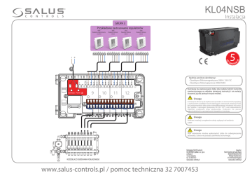KL04NSB Instalacja GRUPA 3 Przykładowe zastosowanie regulatorów L S1 NSB SL L N S2 S1 NSB SL L VS35 Regulator dobowy (slave) N S2 S1 NSB SL VS35 Regulator dobowy (slave) L N S2 S1 NSB SL L N N L AT 5 GW I! S2 VS35 Regulator dobowy (slave) CJ VS30 Regulator programowany (master) ARAN 7 Spełnia poniższe dyrektywy: - Dyrektywa Elektromagnetyczna 2004 / 108 / EC - Dyrektywa Niskonapięciowa 2006/95/EC Instrukcja ma zastosowanie tylko dla modelu SALUS Controls zamieszczonego na okładce niniejszej instrukcji i nie należy stosować jej dla żadnych innych modeli. 12 Uwaga 10 Instrukcja ta odnosi się do użytkowania produktu na terenie Unii Europejskiej z zachowaniem wszelkich innych zobowiązań ustawowych. Instalacja może być przeprowadzona tylko przez wykwalifikowanego instalatora oraz musi być zgodna z wymogami przepisów IEE (BS: 7671) oraz odpowiednimi lokalnymi przepisami kraju użytkownika. Producent nie ponosi odpowiedzialności za postępowanie niezgodne z instrukcją. Uwaga Podczas instalacji, urządzenie należy wyłączyć od zasilania 230V! Uwaga Styk uziemienia można wykorzystać tylko do zabezpieczenia przewodu. Listwa nie posiada uziemienia ochronnego. ROZDZIELACZ OGRZEWANIA PODŁOGOWEGO Dystrybutor SALUS-Controls : QL CONTROLS Spółka z o.o., Sp.k. ul. Rolna 4 43-262 Kobielice tel.: 32 700 74 53 [email protected] www.salus-controls.pl / pomoc techniczna 32 7007453 Importer: SALUS Controls plc Salus House Dodworth Business Park Whinby Road Barnsley S75 3SP United Kingdom [email protected] Instalacja 1 Zdejmij górną pokrywę listwy. Odkręć śruby w kierunku przeciwnym do ruchu wskazówek zegara o 1/4 obrotu. 5 Umieść w odpowiednich polach przewody regulatorów. 9 12 Podłącz w odpowiednie styki pozostałe przewody regulatorów temperatury (w górnej części listwy). Podłącz KL04NSB do KL08NSB używając odpowiedniej taśmy (w zestawie dostarczono 2 długości). Pamiętaj o odpowiedniej orientacji taśmy. KL04NSB Zastosowanie i instalacja listwy KL04NSB Zastosowanie listwy KL04NSB gwarantuje proste i bezpieczne podłączenie regulatorów temperatury oraz siłowników termoelektrycznych. 6 2 Przykręć z powrotem główną część listwy do tylnej obudowy. Odkręć główną część listwy od dolnej obudowy. Poniżej opisano 3 przykładowe konfiguracje podłączenia regulatorów w systemie NSB: Podłącz w odpowiednie styki przewody 10 siłowników termoelektrycznych, jak 13 pokazano na zdjęciu poniżej. Jeden regulator może sterować jednocześnie czterema siłownikami. Jeżeli Twój 7 Podłącz przewody zasilania L i N. 14 Usuń odpowieni odcinek izolacji z 10mm Zasilanie 50mm 10mm Regulatory temperatury Zamocuj element zabezpieczający przed wyrwaniem przewodu zasilania. 11 Podłącz zasilanie listwy - zapali się czerwona dioda. - Jedna grupa regulatorów - jeden regulator VS30 (master) steruje nocnym obniżeniem 7 pozostałych regulatorów VS35. W tym celu należy umieścić mostek pomiędzy stykami „1-4”, a „5-8” znajdującymi się na szarym polu obok zasilania listwy. Listwę KL04NSB należy zamontować w suchym i zamkniętym miejscu. Wilgotność powietrza nie może przekraczać 95%. Do czyszczenia listwy KL04NSB używaj suchej ściereczki, nie używaj silnych detergentów. Zdejmij pokrywę listwy KL04NSB Dioda Sygnalizacja Podłączenie Zasilanie LED Strefa 9 110mm Zamknij górną pokrywę listwy. 15 8 - Dwie grupy po 4 regulatory - np. w każdej grupie 1xVS30 + 3xVS35. - Trzy grupy po 4 regulatory - trzecia grupa podłączona do modułu rozszerzającego KL04NSB. układ wymaga podłączenia więcej niż 4 siłowników do jednej strefy grzewczej, zalecamy użycie dodatkowego przekaźnika, lub podłączenie jednego regulatora do kilku stref w listwie - mostkując przewód z symbolem SL. listwę KL04NSB do 3 Przymocuj ściany lub szyny DIN. Jeżeli mocujesz KL04NSB zaraz obok KL08NSB - użyj krótkiej taśmy podłączeniowej, w przeciwnym wypadku, możesz wykorzystać dłuższą taśmę. 4 Usuń zaślepkę w górnej pokrywie listwy. •• • KolorFunkcja Dioda KL04NSB jest poprawnie połączona z KL08NSB Strefa 10 Listwa KL04NSB jest podłączona do zasilania Strefa 11 Zapotrzebowanie na ciepło strefy 9-siłowniki strefy 9 otwarte Strefa 12 Kolor Funkcja •• • Zapotrzebowanie na ciepło strefy 10-siłowniki strefy 10 otwarte Zapotrzebowanie na ciepło strefy 11-siłowniki strefy 11 otwarte Zapotrzebowanie na ciepło strefy 12-siłowniki strefy12 otwarte www.salus-controls.pl / pomoc techniczna 32 7007453