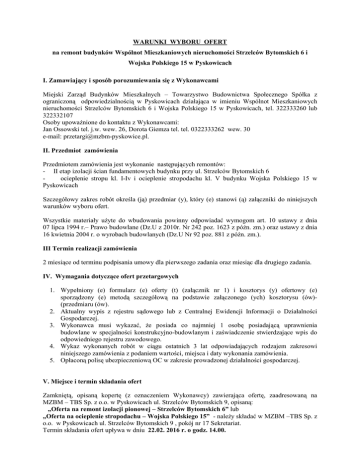 WARUNKI WYBORU OFERT na remont budynków Wspólnot