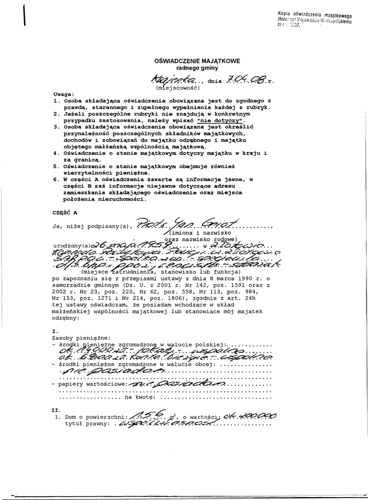 1. Osoba skl:adajaca oswiadczenie obowiazana jest do zgodnego z