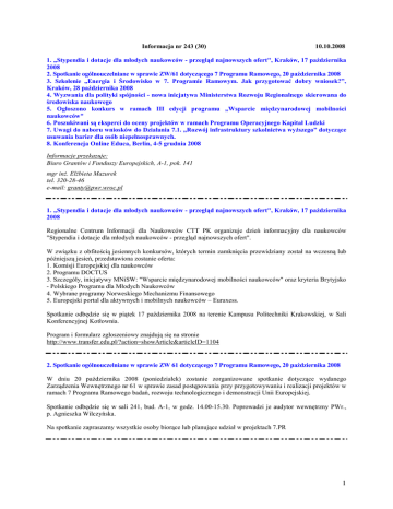 Informacja nr 243 (30) 10.10.2008 1. „Stypendia i dotacje dla