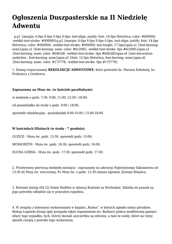Ogłoszenia Duszpasterskie na II Niedzielę Adwentu