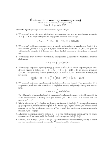 Temat: Aproksymacja średniokwadratowa i jednostajna.