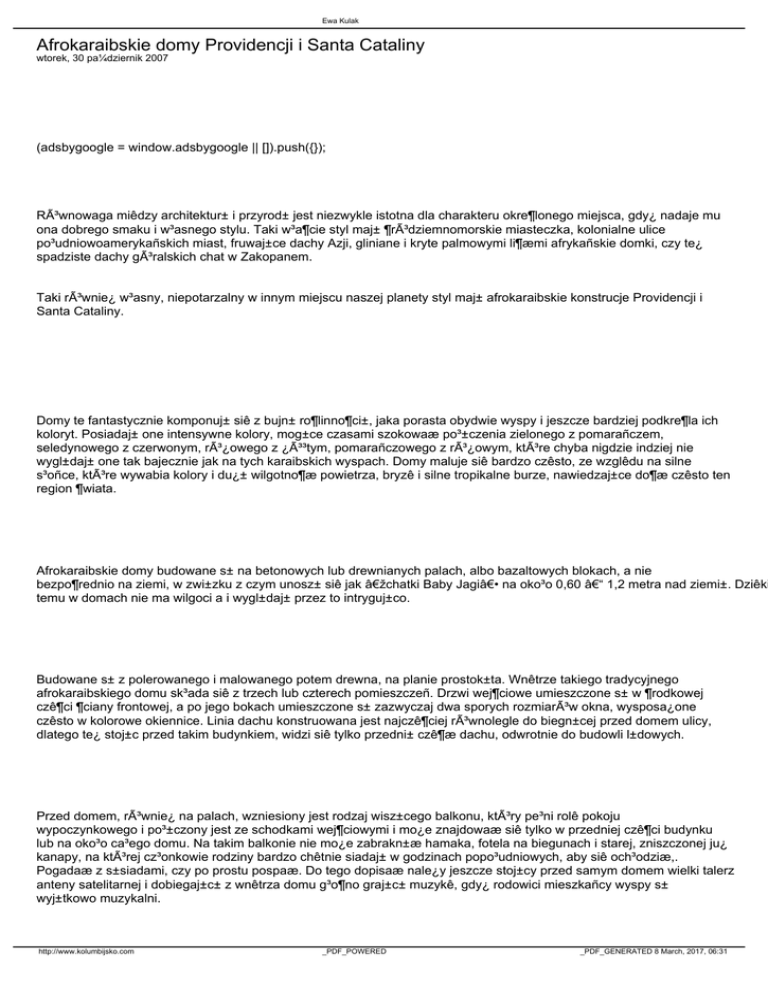 Taki równie¿ w³asny, niepotarzalny w innym miejscu naszej planety styl maj± afrokaraibskie konstrucje Providencji i