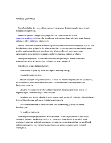 WARUNKI GWARANCJI Firma Teka Polska Sp. z oo