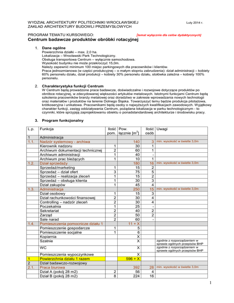 WYDZIAŁ ARCHITEKTURY POLITECHNIKI WROCŁAWSKIEJ