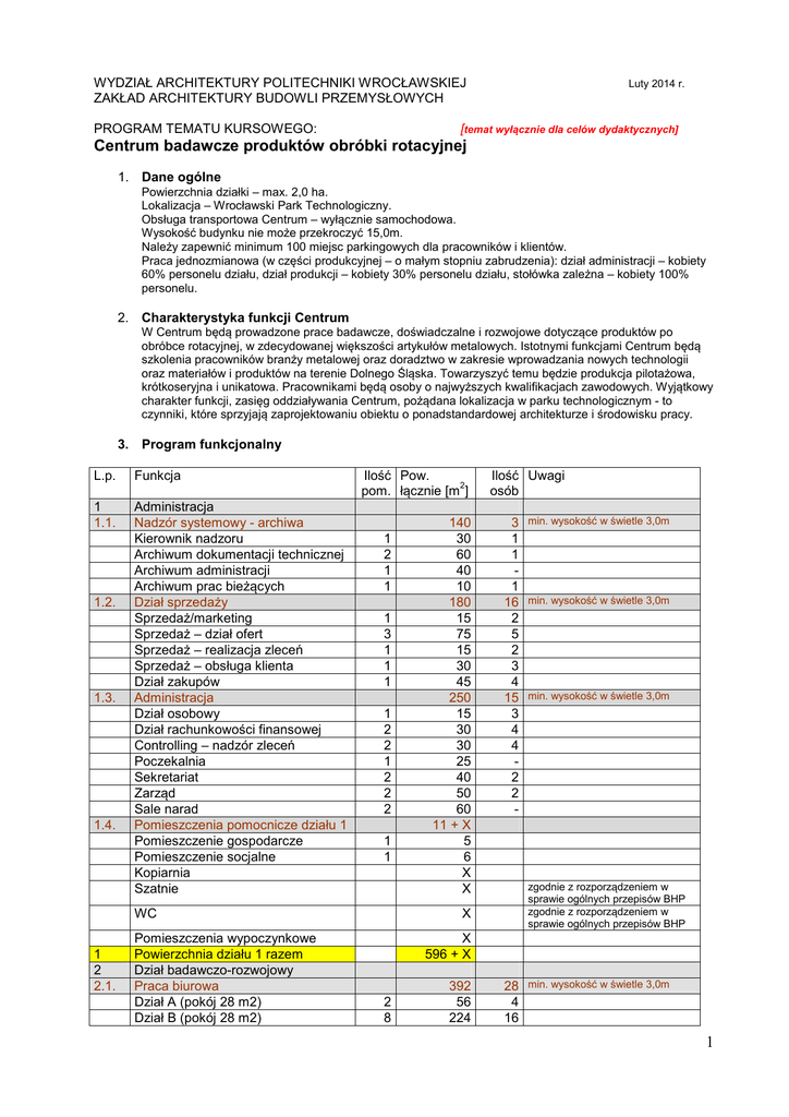 powierzchniowych programu: +/- 5%. Na planszy zagospodarowania działki zakładu w skali 1:500 należy