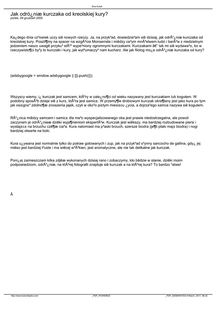 Ka¿dego dnia cz³owiek uczy siê nowych rzeczy. Ja, na przyk³ad, dowiedzia³am siê dzisiaj, jak odró¿niæ kurczaka od