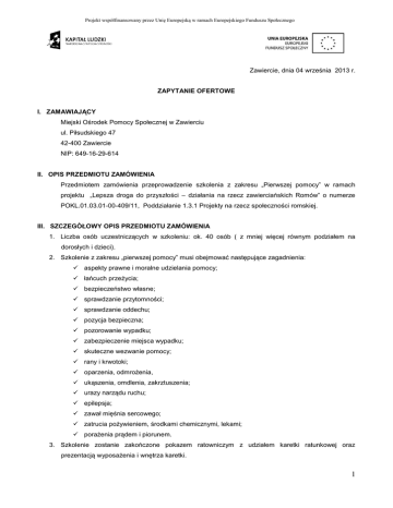 Zawiercie, dnia 04 września 2013 r. ZAPYTANIE OFERTOWE I