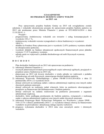 UZASADNIENIE DO PROJEKTU BUDŻETU GMINY WOŁÓW na