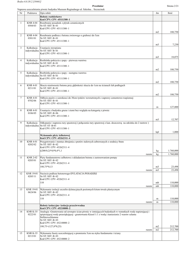 Rodos 6.8.38.2 [10461] Przedmiar Strona 2/21 Naprawa